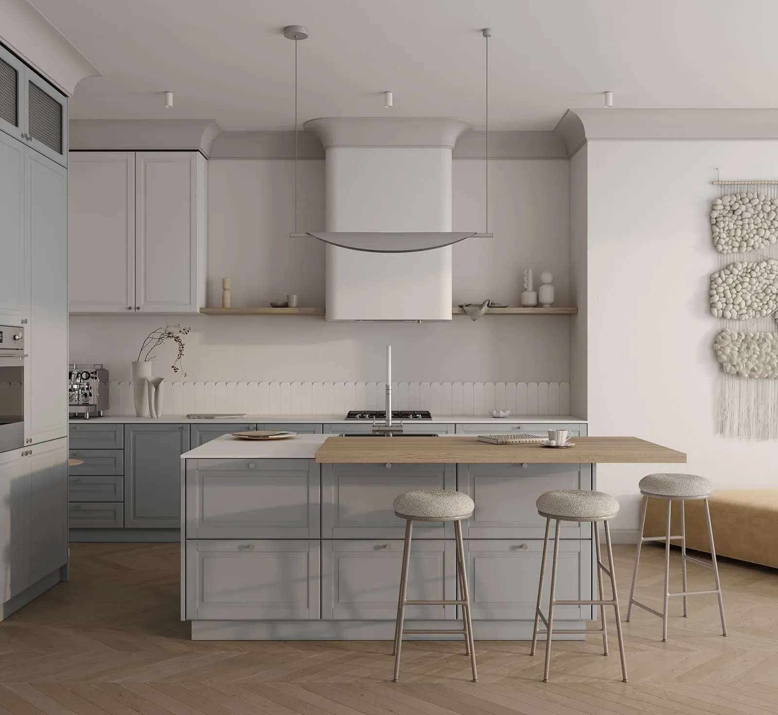 ФАСАДЫ Фаби (МДФ/ПВХ), цвет NCS S 2010-B10G Матовый / NCS S 0500-N Матовый СТОЛЕШНИЦА Компакт-плита, 12 мм / пластик HPL, 38 мм