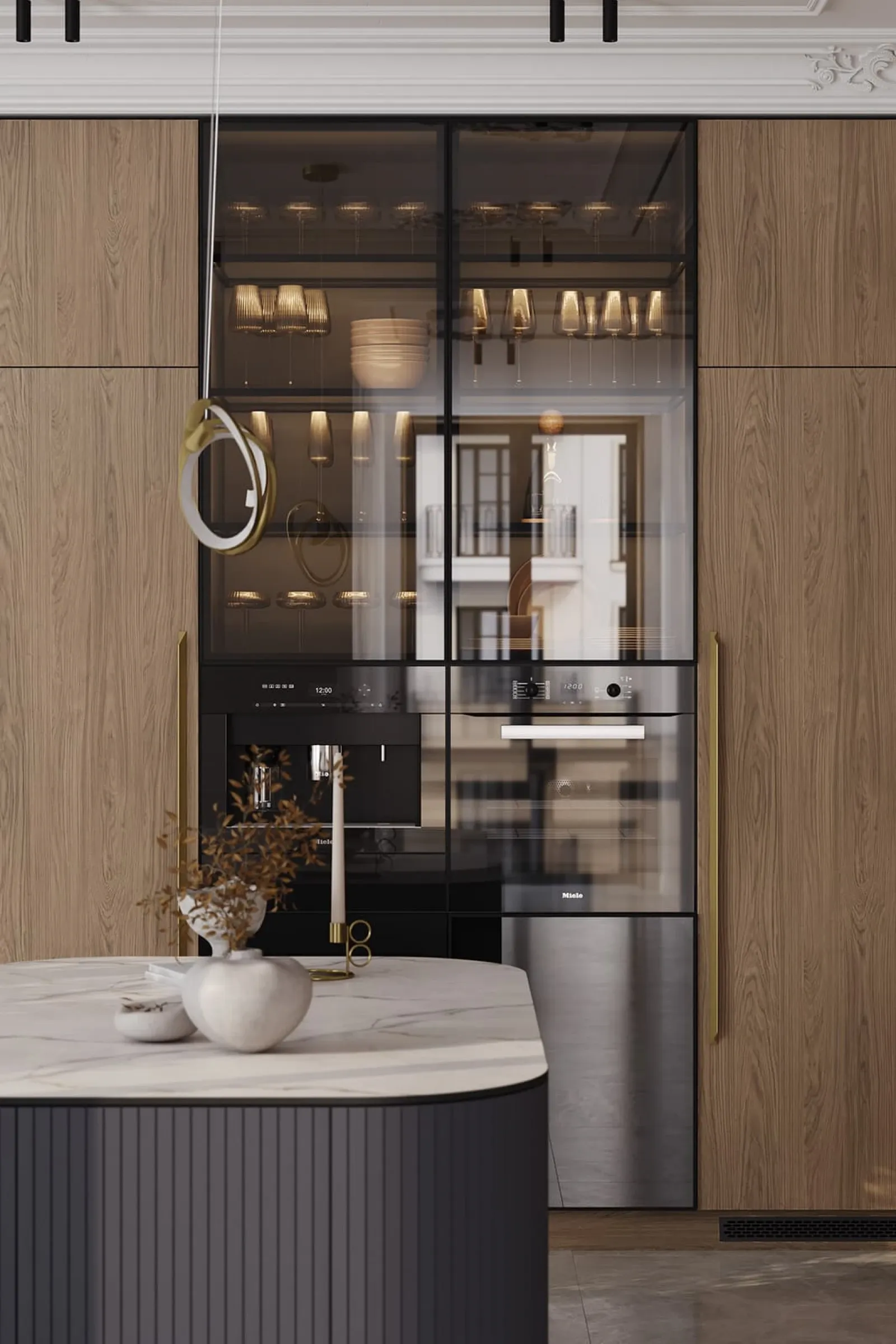 Витрины: Алюминиевый профиль А-6 Черный Матовый (скрытая петля AIR PUSH), стекло Феникс Графит