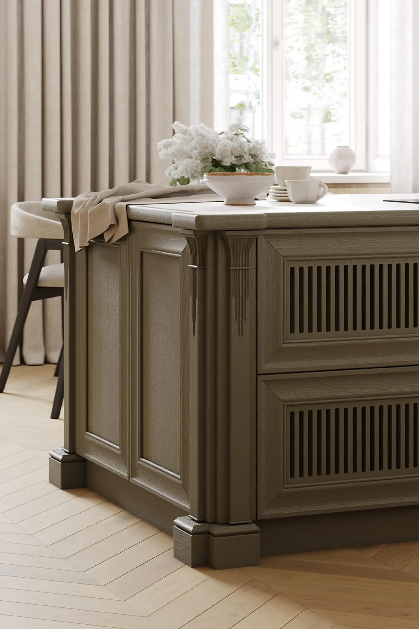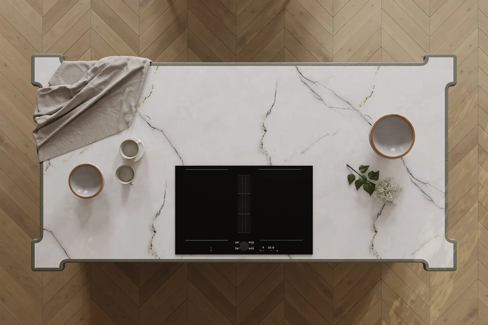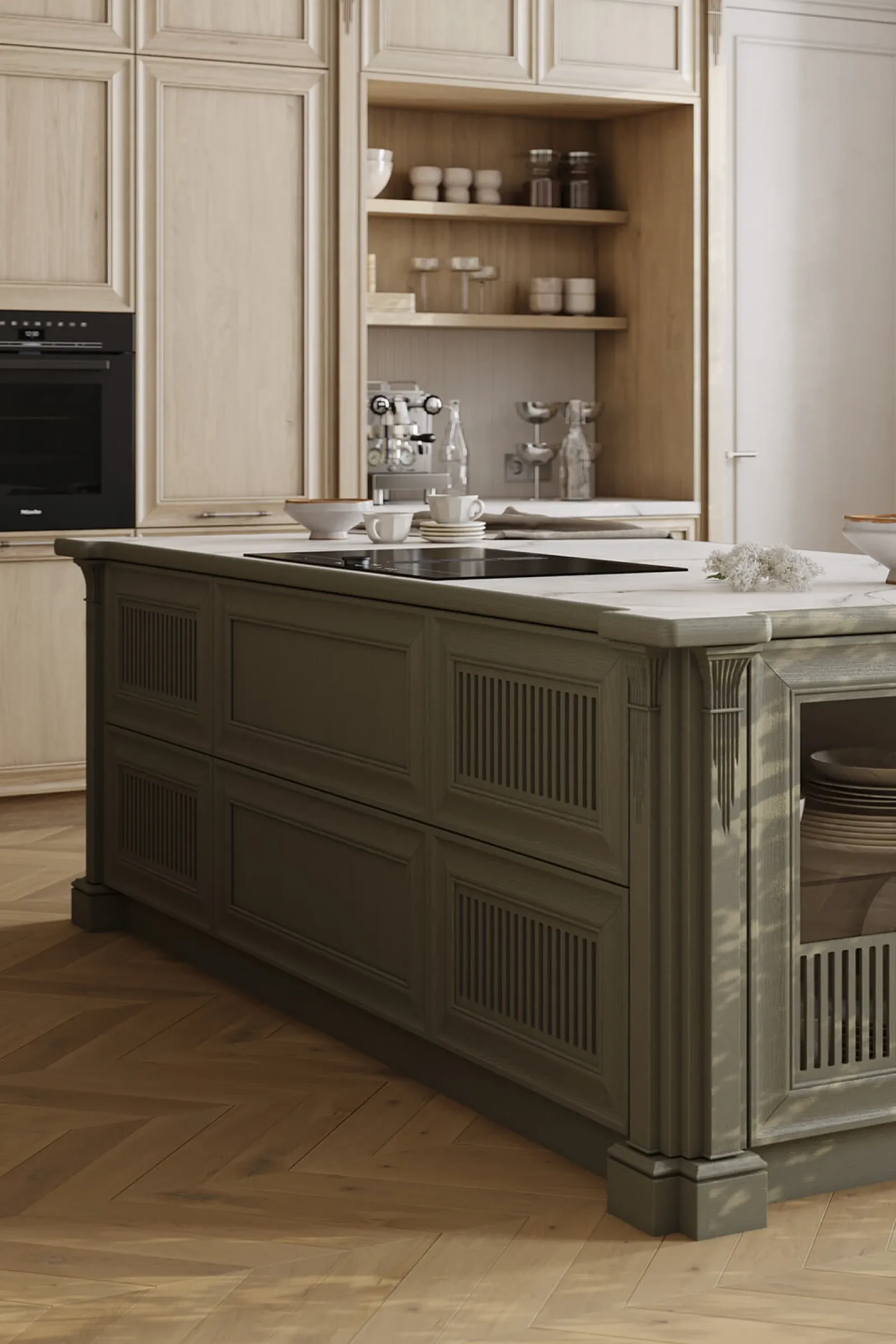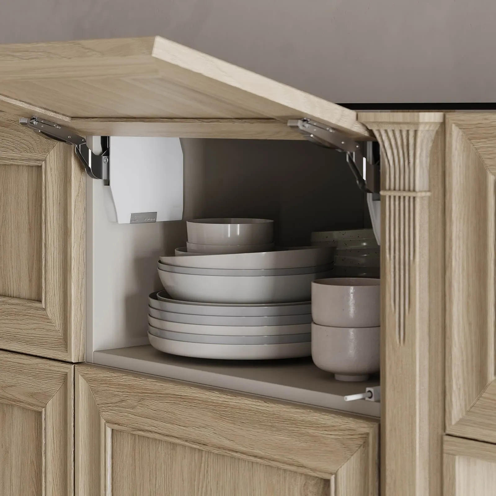 ФАСАДЫ Т747 Натуральный дуб, цвет NCS S 5010-G50Y / #190 (масловоск Натуральный) СТОЛЕШНИЦА Пластик HPL, 38 мм, декор Миони