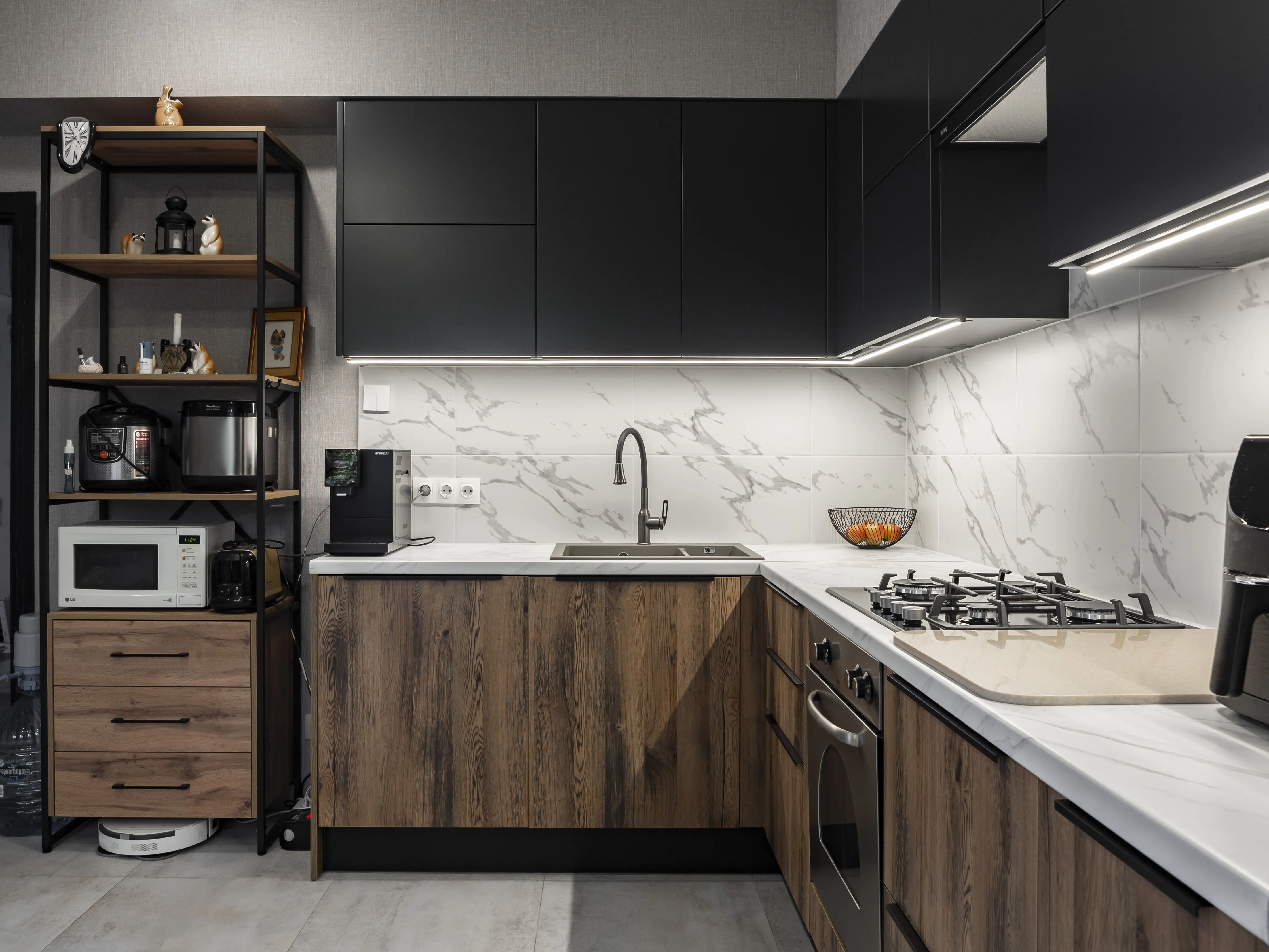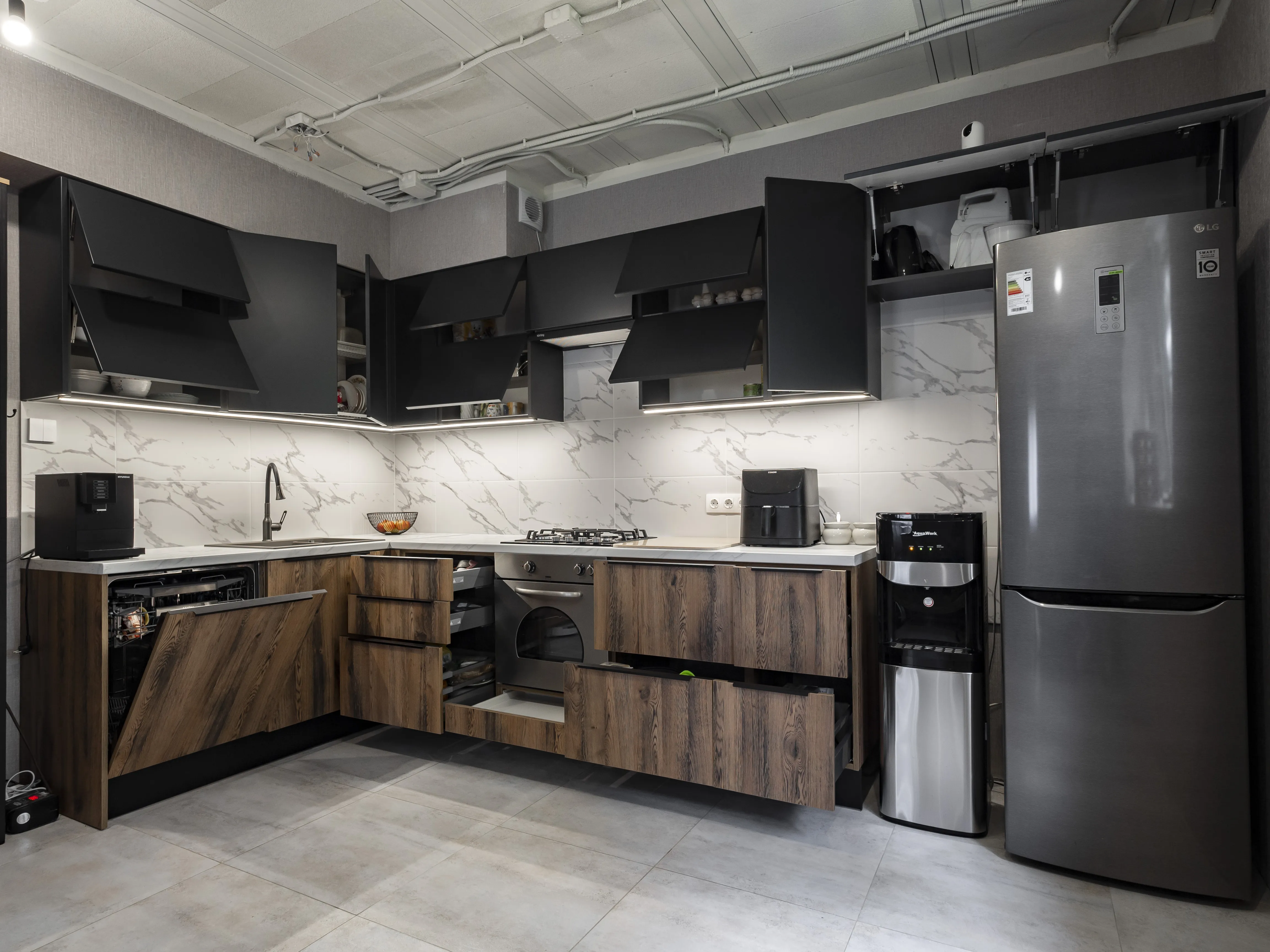 ◦ Фасад: Тимбер в цвете Аттик; Краска в цвете RAL 7016
